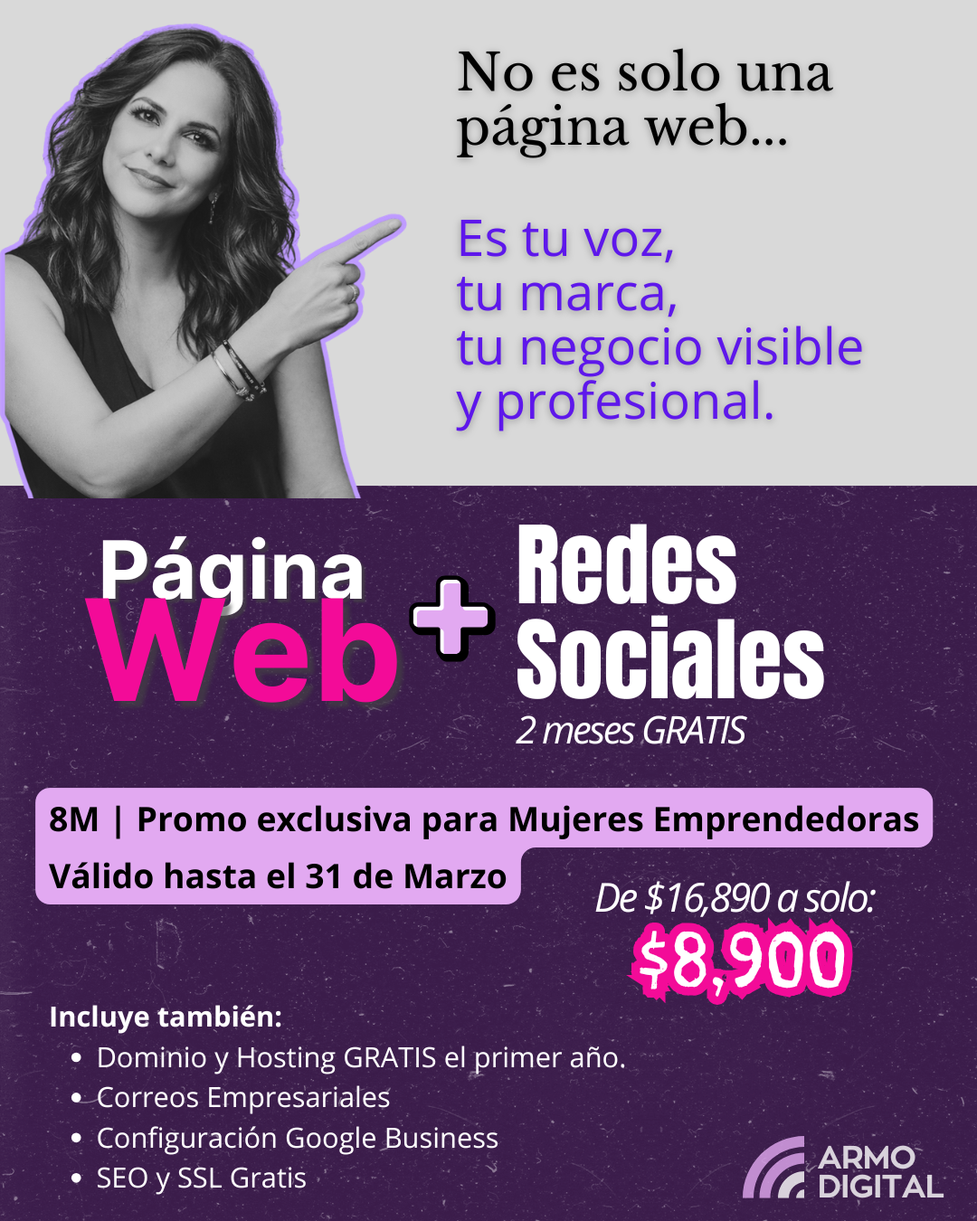 En ARMO Digital no solo diseñamos, creamos estrategias que impulsan. Desde emprendedores que inician hasta marcas consolidadas, nuestro enfoque es claro: hacerlo simple, hacerlo grande. Transformamos ideas en marcas visibles, funcionales y memorables. Sígueme en mis redes sociales: